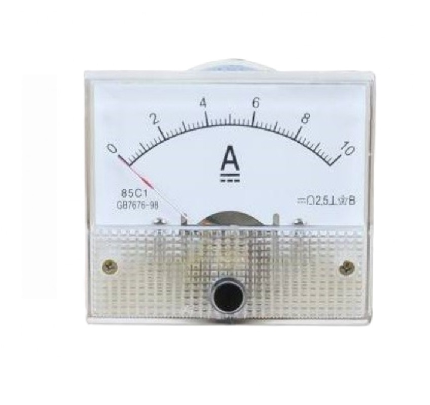 Ampermetrul analogic de panou model 85C1 este destinat masurarii curentului continuu pana la 10A. Instrumentul are panou frontal compact, precizie de 2.5% si include shunt pentru conectare.