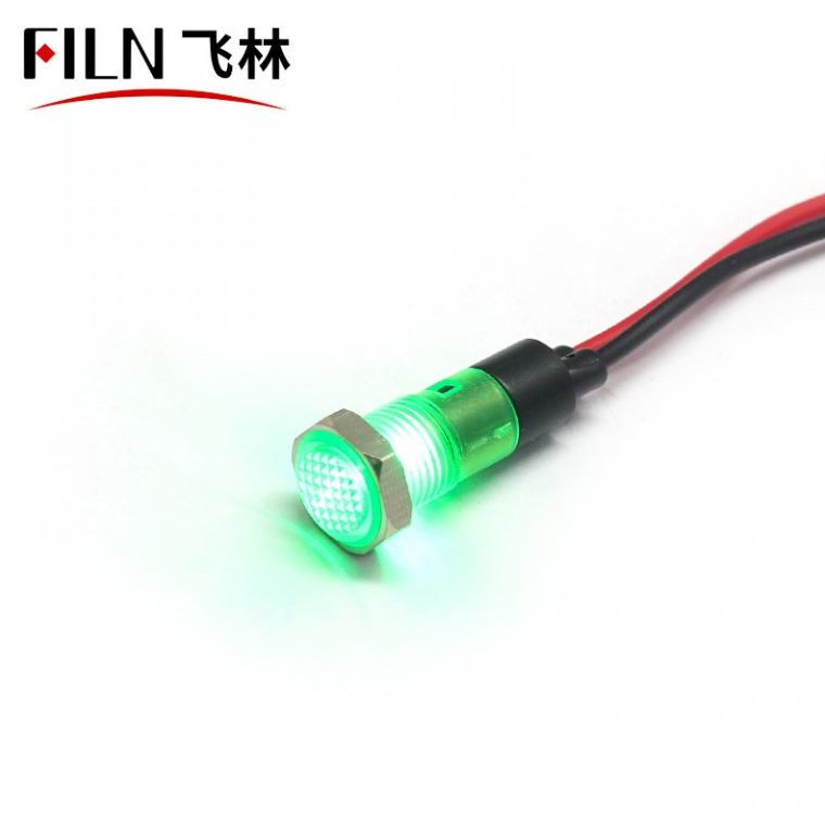 Indicator LED de panou din plastic, 8mm, 2 fire 20cm, verde, 12-24V DC, IP55, FL1P-08NW-1-GREEN