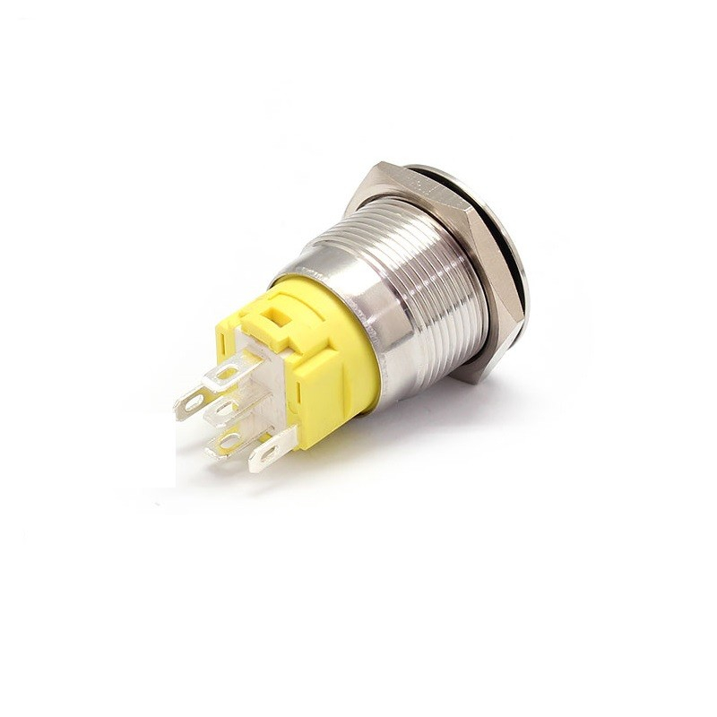 Buton push metalic cu retinere mecanica si iluminare LED albastru, proiectat pentru aplicatii industriale, automatizari, panouri de comanda si echipamente electrice.