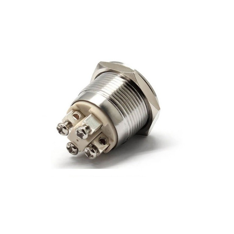 Buton push metalic cu retinere mecanica si iluminare LED verde, proiectat pentru aplicatii industriale, automatizari, panouri de comanda si echipamente electrice.
