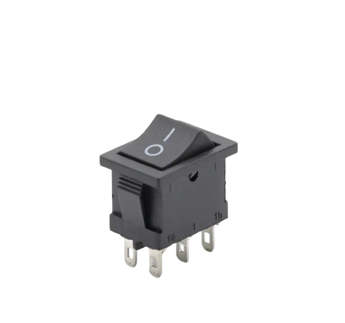 Configuratia DPDT (Double Pole Double Throw) permite comutarea simultana a doua circuite electrice independente. Cele 6 terminale ofera flexibilitate in realizarea conexiunilor pentru selectarea circuitelor, schimbarea sensului de rotatie la motoare DC sau selectarea intre doua surse de alimentare. Constructia din plastic tehnic rezistent si contactele metalice asigura functionare stabila si durabilitate in utilizare.