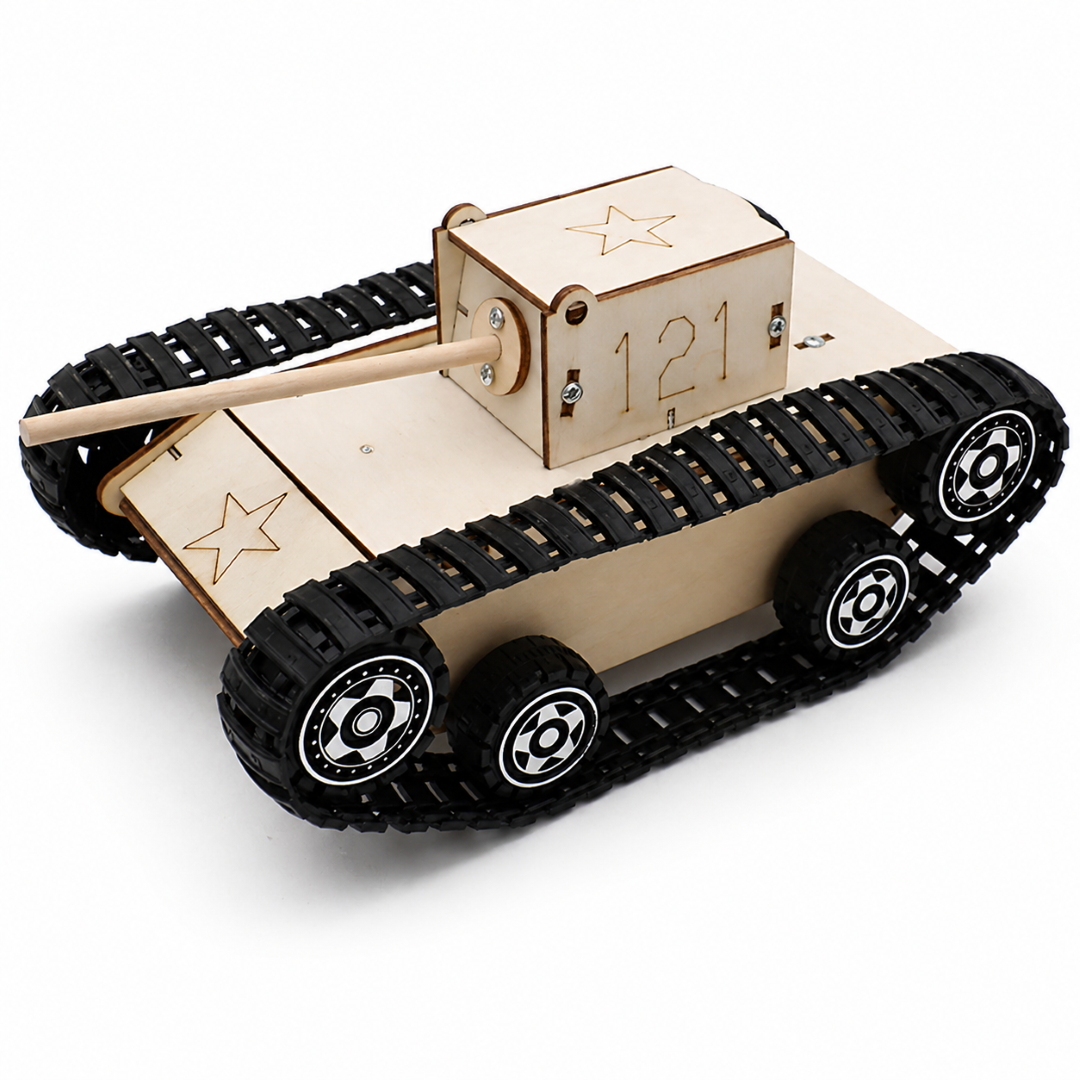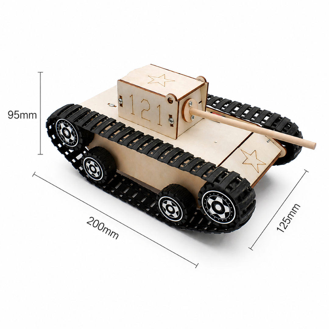 Acest produs este un tanc electric DIY, realizat pentru a imita aspectul unui tanc real, cu un design robust si atractiv. Este ideal pentru copii si pasionati de proiecte tehnice, oferind o experienta practica de asamblare si intelegere a functionarii unui sistem mecanic simplu.