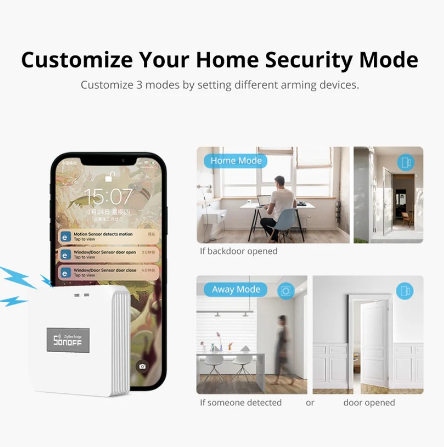 Sonoff Zigbee Bridge Pro este un hub inteligent care permite integrarea dispozitivelor Zigbee in ecosistemul smart home Sonoff, functionand ca punte intre reteaua Zigbee si reteaua WiFi. Suporta pana la 128 de dispozitive Zigbee, inclusiv senzori, prize si becuri inteligente, oferind control si monitorizare prin aplicatia eWeLink. Designul compact si securitatea avansata fac din acest dispozitiv o solutie practica si fiabila pentru automatizarea locuintei.