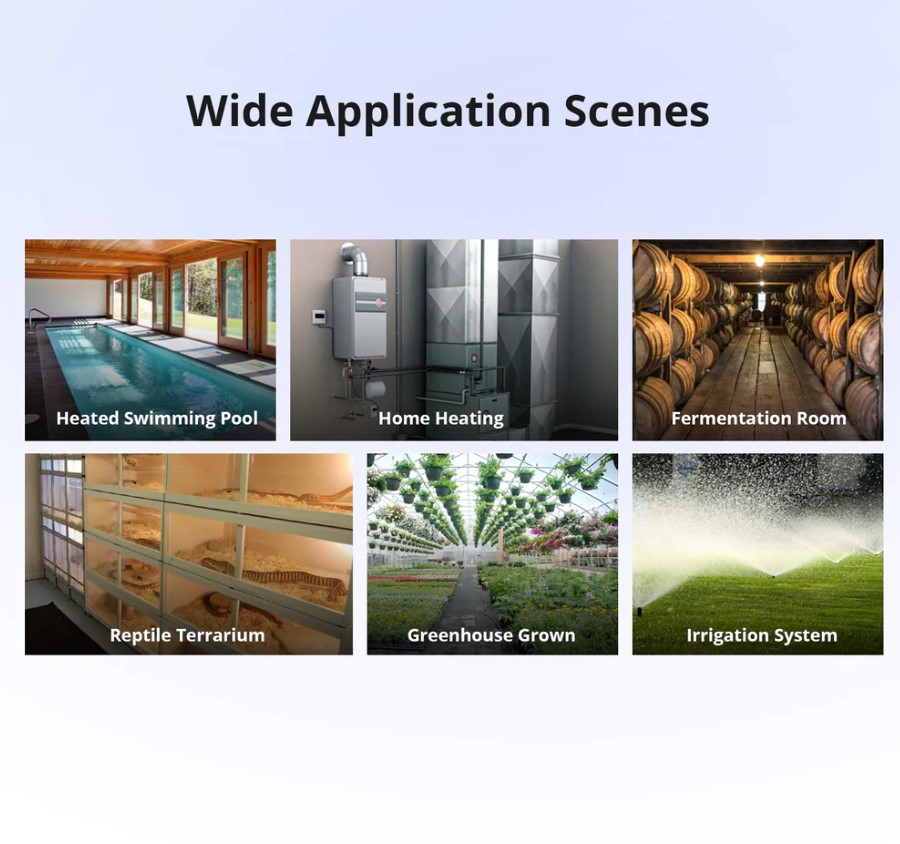 Acest intrerupator smart poate fi folosit cu succes pentru sistemele de irigatie, in sere, in beciuri si alte incaperi intrebuintate pentru fermentarea bauturilor sau alimentelor, la piscinele interioare, terarii etc.