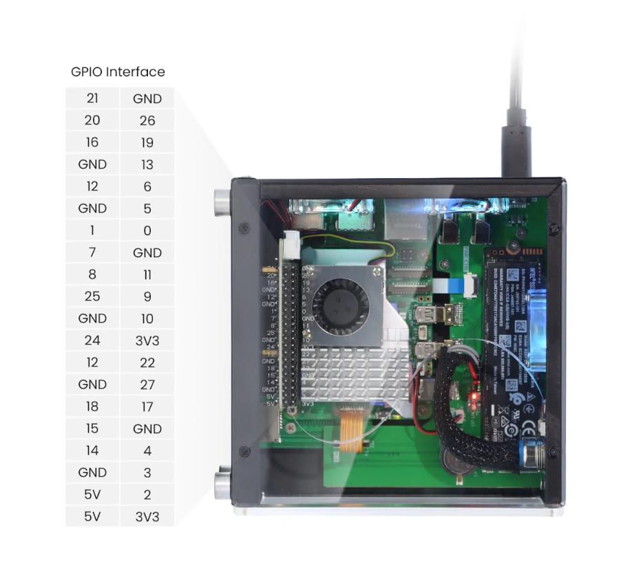 Pe langa adaptorul GPIO, carcasa pastreaza porturile USB, HDMI, Ethernet si alte interfete ale placii, asigurand folosirea completa a capacitatilor de conectivitate.