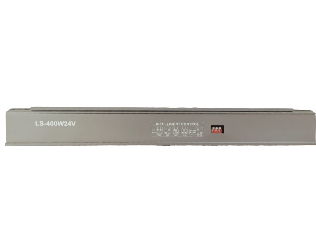 Sursa slim LS-400W24V este destinata alimentarii sistemelor LED, oferind o putere de 400 W si curent maxim de 16.7 A la 24 V DC. Carcasa metalica din aluminiu permite disiparea eficienta a caldurii, iar bornele rapide colorate faciliteaza conectarea. Functia de control inteligent prin dip-switch permite selectarea nivelului de putere si activarea modului soft-start, protejand benzile LED impotriva varfurilor de curent. Este recomandata pentru instalatii profesionale de iluminat interior, tehnic sau decorativ.