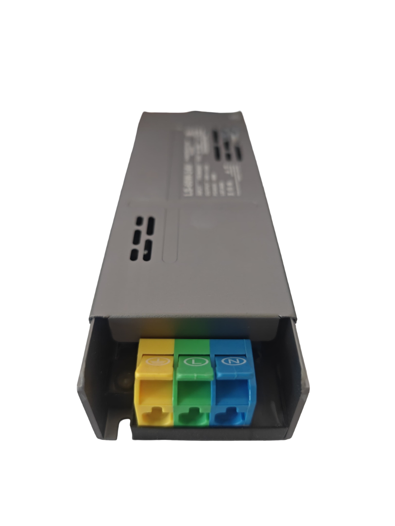5A. Carcasa metalica din aluminiu asigura disipare termica eficienta si fiabilitate. Terminalele rapide colorate permit conectare usoara. Dispune de control inteligent cu dip-switch: permite selectarea nivelului de putere si activarea functiei de pornire lenta (soft-start), protejand benzile LED impotriva varfurilor de curent. Recomandata pentru instalatii profesionale, mobila, iluminat tehnic sau decorativ.